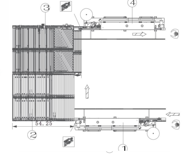 Это решение используется для соединения двух кромкооблицовочных станков с одинаковым направлением подачи. По сравнению с одномашинным производством использование автоматической производственной линии позволяет сэкономить двух операторов, значительно увеличить производительность и снизить повреждения при транспортировке кромкооблицовочных панелей.